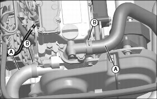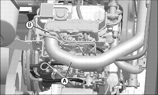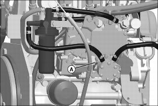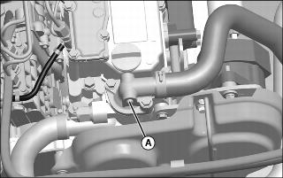 6. Check radiator hoses (A) connected to the engine for damage or cracking. Replace if necessary.