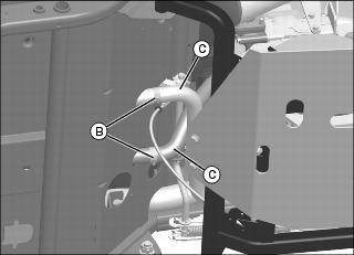 8. Check radiator hose (C) between intermediate tubes and radiator for damage or cracking. Replace if necessary.