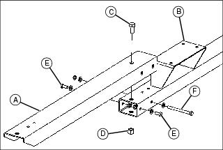 b. Loosely install two 5/16x3/4 in. bolts (E), two 5/16 in. flat washers and two 5/16 in. locknuts.