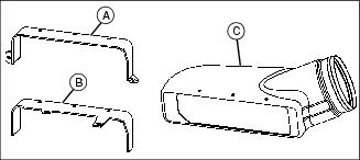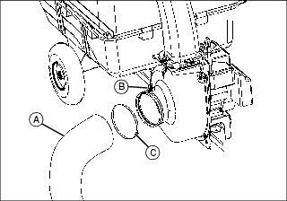 1. Install blower hose (A) on blower housing inlet, under switch pivot plate (B) and secure with 8 in. hose clamp (C).