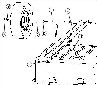 4. Remove lock bracket hardware and lock bracket (H). Save for reuse (Permanent MC542 removal).