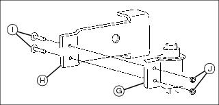 2. Install switch (G) to towbar switch bracket (H) using two #10x3/4 in. screws (I) and two #10 locknuts (J).