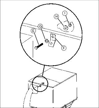 c. Install the 5/16 in. fender washer (H) and 5/16 in. locknut (I) on the bolt and tighten securely.