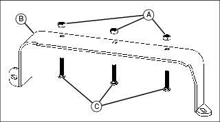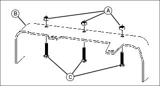 1. Install three 5/16x1-1/4 in. carriage bolts (A) in deck boot bracket (B) and secure with three 5/16 in. nuts (C).