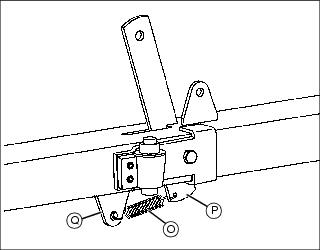 4. Install latch spring (O) on bed release handle (P) and towbar tab (Q).