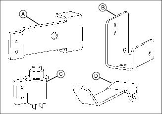 2. Install three 5/16 in. flat washers (D) on deck bracket bolts.