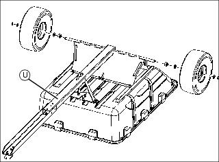 7. Position towbar assembly (U) on bed and install axle and wheels with original hardware removed earlier.