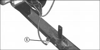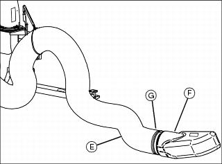 4. Position the blower hose (E) on the deck boot (F) and secure with a 8 in. hose clamp (G).