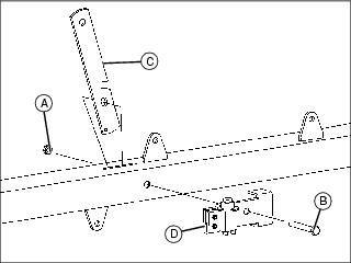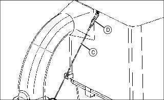 3. Position the cart towbar on the machine, install the clevis pin (C) and secure with the spring locking pin (D).