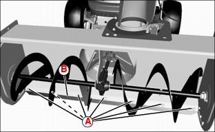 • One M6x45 bolt (A) and M6 nut on each auger shaft.