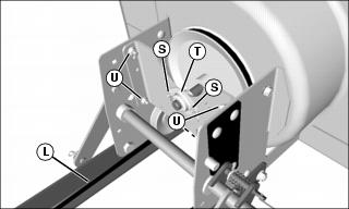 6. Remove two nuts (S) and auger shaft bearing (T) from gearbox plate.