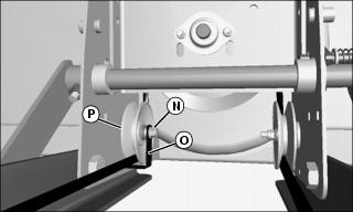 4. Remove nut (N) and belt guard (O) from front left idler sheave (P) at rear of snowblower housing.