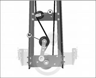 3. Disengage secondary drive belt (L) from tensioning sheave (M) and remove from secondary drive sheave.