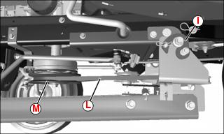 6. Install primary drive belt (L) on machine drive sheave (M).