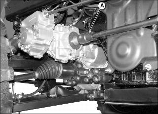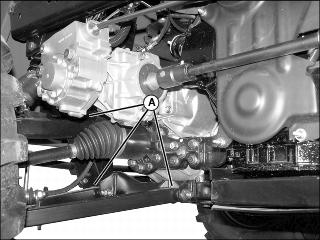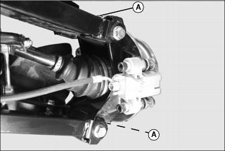 Lubricate two grease fittings (A) on drive line with one or two shots of grease.