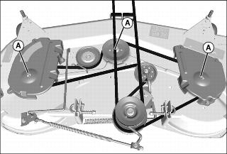 • Lubricate two mower spindle grease fittings (A) with two pumps of grease at specified interval.