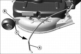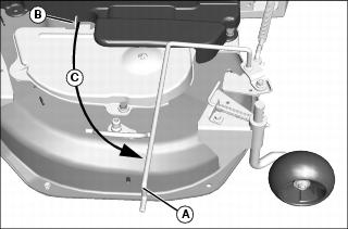 • Move rod as far as possible toward rear wheel (C) to remove all belt tension.