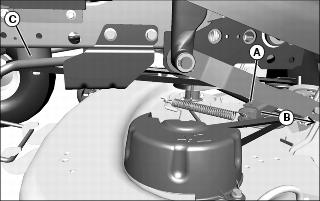 • Remove spring locking pin (A), and remove tension rod (B) from tension handle bracket (C).