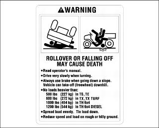 227 kg (500 lb) en TS, TE 272 kg (600 lb) en TX, TX TURF 454 kg (1000 lb) en TH 6x4 544 kg (1200 lb) en TH 6x4 DIÉSEL