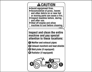 • La acumulación de hierba, hojas y otros residuos en o cerca de piezas calientes o en movimiento puede ocasionar un incendio.