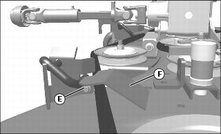 4. Install belt guide (F) and secure with self-tapping screw (E) on each side of mower deck.