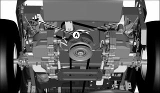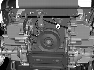 2. Inspect drive belt (A) for excessive wear, damage or stretching while in position on all machine sheaves.