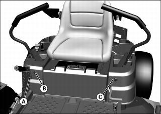 b. Raise seat and disconnect wiring harness connector (C) from seat switch.