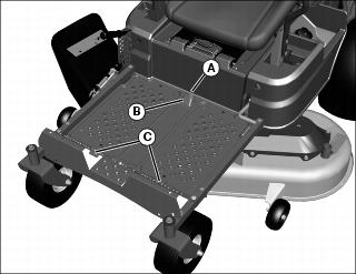 2. Raise mower deck to gain access to mower blades. If necessary, remove mower deck.