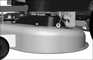 8. Install pin and spring clip (D) onto each side of rear mower bracket.