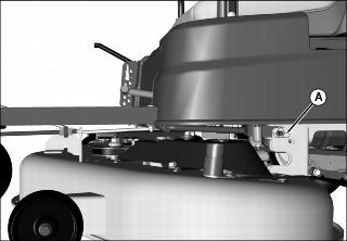 5. Lower mower lift lever, and install pin and spring clip (A) onto each side of rear mower bracket.