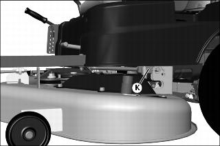 1. Align the splined center hole in the blade with the splined spindle shaft (K) and put the blade onto the mower spindle shaft with cutting edge toward ground.
