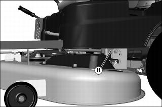 8. Remove spring clip (H) and pin from each side of rear mower bracket.