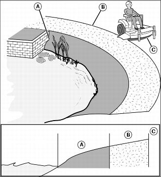 Picture Note: Example side view of slope and hazards, showing areas (A), (B), and (C).