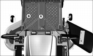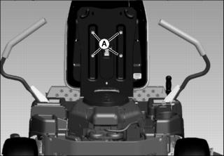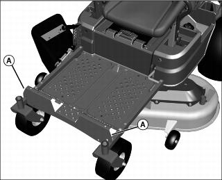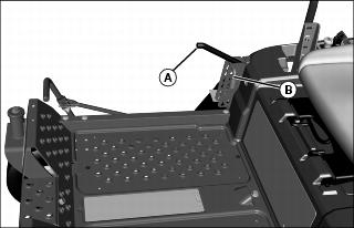2. Pull upward on mower deck lift lever (A) and pull lever towards center of machine to lock in raised position.