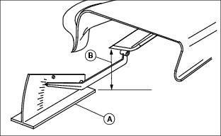 b. Measure from blade tip to the surface. Take measurement for both blades. The front blade tip must be 3 - 6 mm (1/8 - 1/4 in.) lower than rear blade tip.