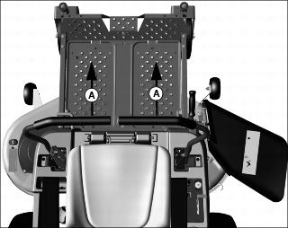• Mount the machine from the front using step (A) and/or the foot plate (B).
