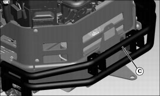 If an attachment bar is on the unit, secure the vehicle using the center of the top bar (C).