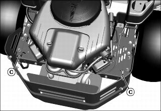 2. Loosen four seat bolts with a 13mm wrench or the height of cut (HOC) pin.