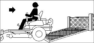 • Do not use two separate loading ramps. Use a full width loading ramp at least 30 cm (12 in.) wider than machine to keep caster wheels from going off the ramp edge.