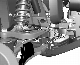Picture Note: Four grease fitting locations (B) on right front side of machine shown.
