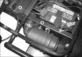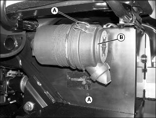 3. Release latches (A) and remove air cleaner canister cover (B).