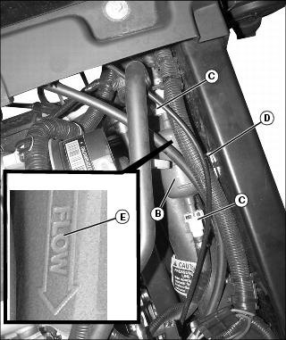 7. Check radiator hose (C) between intermediate tubes and radiator for damage or cracking. Replace if necessary.