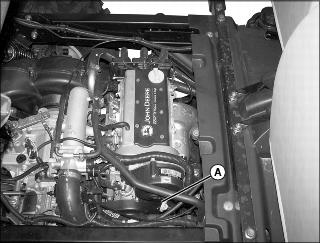 5. Check radiator hoses (A) between intermediate tubes and engine for damage or cracking. Replace if necessary.