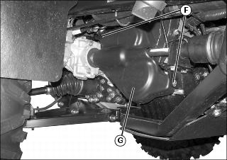 12. Add recommended fluid no higher than upper mark on dipstick (G). Do not overfill.