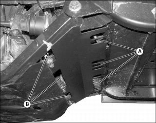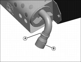 3. Loosen nut (A) on clamp securing spark arrestor (B) on muffler exhaust pipe.