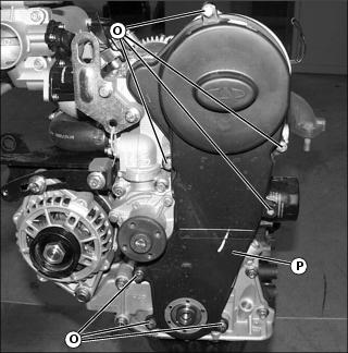 4. Tighten tensioner bolt (R) to 25 N•m (18 lb-ft).