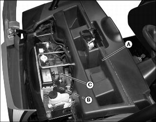 4. Inspect belt (C) for wear or damage. Replace if worn or damaged. (See “Replace Belt” for procedure.)