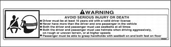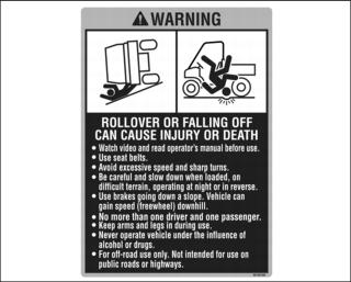 ROLLOVER OR FALLING OFF CAN CAUSE INJURY OR DEATH