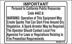 Operation of This Equipment May Create Sparks that Can Start Fires Around Dry Vegetation. A Spark Arrestor May be Required. The Operator Should Contact Local Fire Agencies For Laws or Regulations Relating to Fire Prevention Requirements.