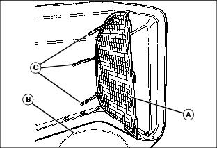 Fasten hopper screen to tabs with three tie straps (C). Put tie straps through holes in hopper top tabs and slots in screen.